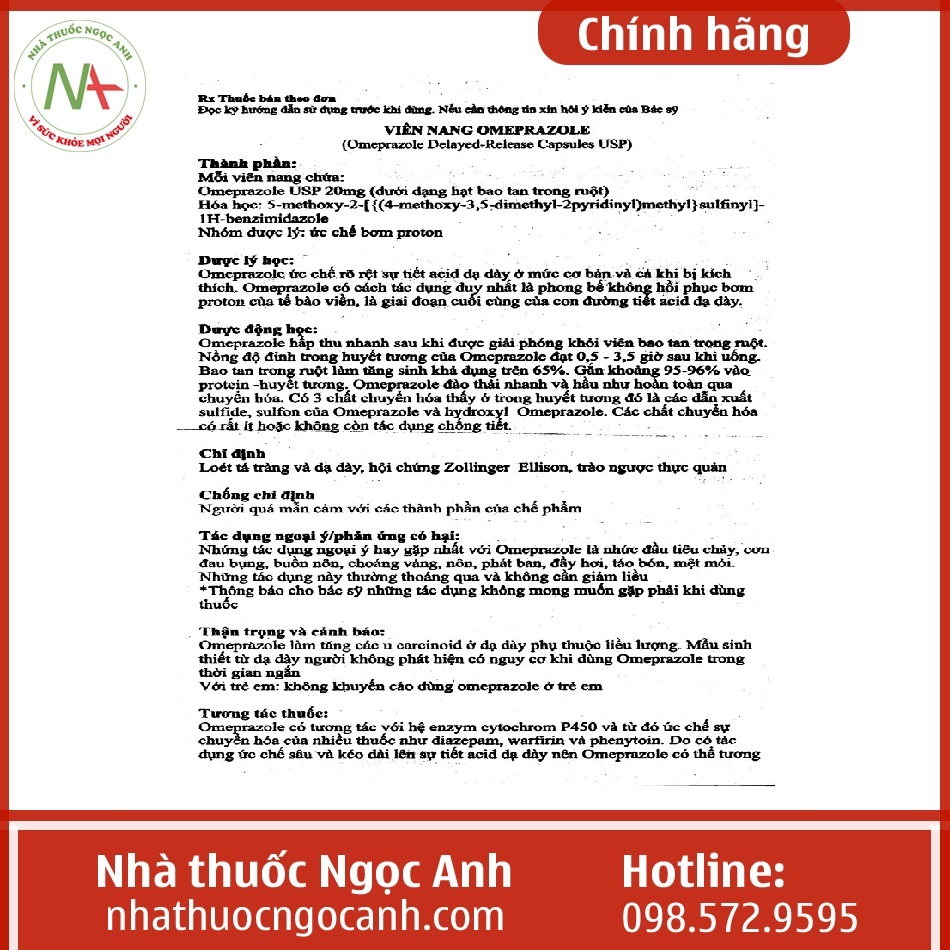 -> Liệu pháp ba: Omeprazol 20 mg x 2 lần/ngày trong 1 tuần.