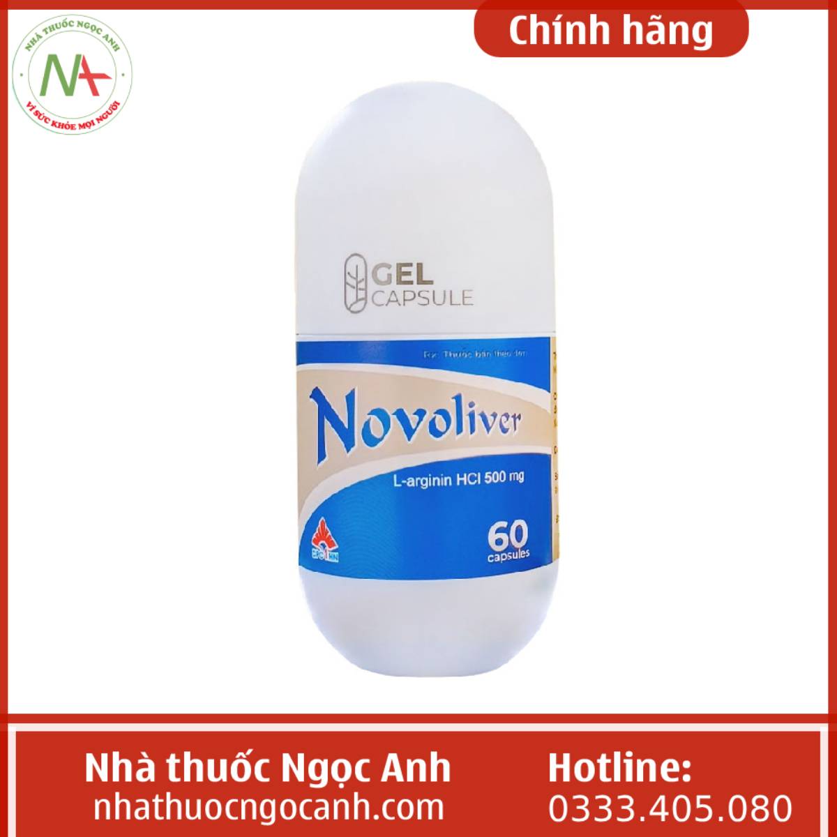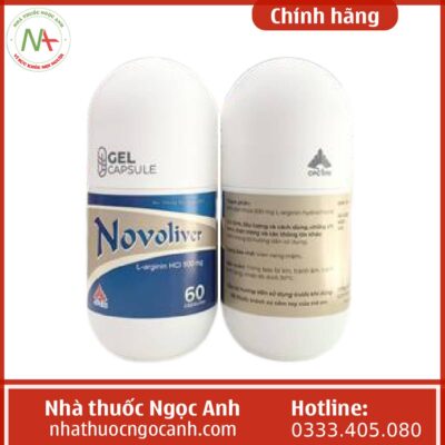 Thuốc Novoliver thuộc nhóm thuốc kê đơn, có tác dụng điều trị rối loạn tiêu hóa, bổ sung dinh dưỡng cho người rối loạn chu trình urê, điều trị cho bệnh nhân gặp tình trạng tăng amoniac máu. Đây là một sản phẩm được sản xuất bởi Công ty cổ phần dược phẩm CPC1 Hà Nội và đã được Bộ Y tế Việt Nam cấp phép lưu hành trên thị trường với số đăng ký VD – 27589 – 17.