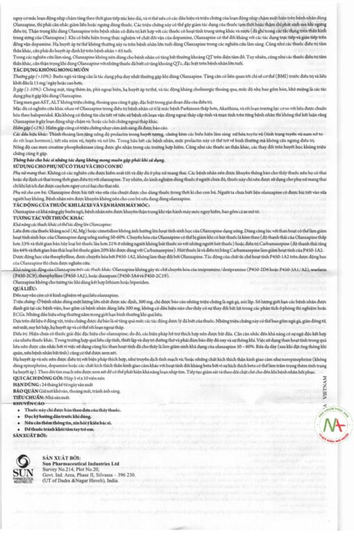 ==>> Xem thêm thuốc có cùng hoạt chất: Thuốc Olanzapine: Công dụng, liều dùng, lưu ý tác dụng phụ, giá bán