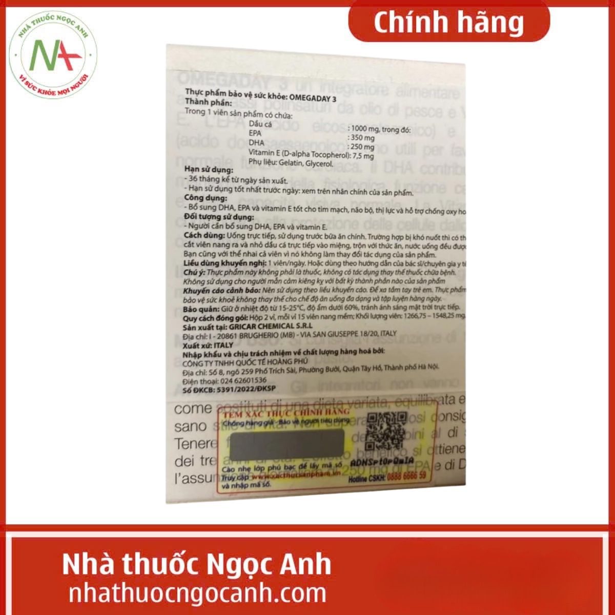- Sản phẩm Omegaday 3 không phải là thuốc và không có tác dụng thay thế thuốc chữa bệnh.