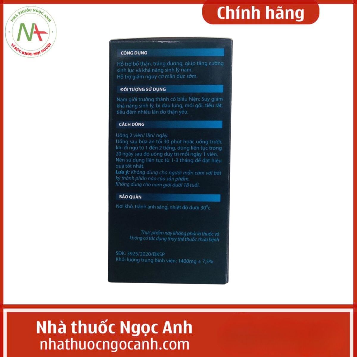 - Hỗ trợ chức năng thận, bổ thận, tráng dương, cải thiện sức khỏe sinh lý phái mạnh