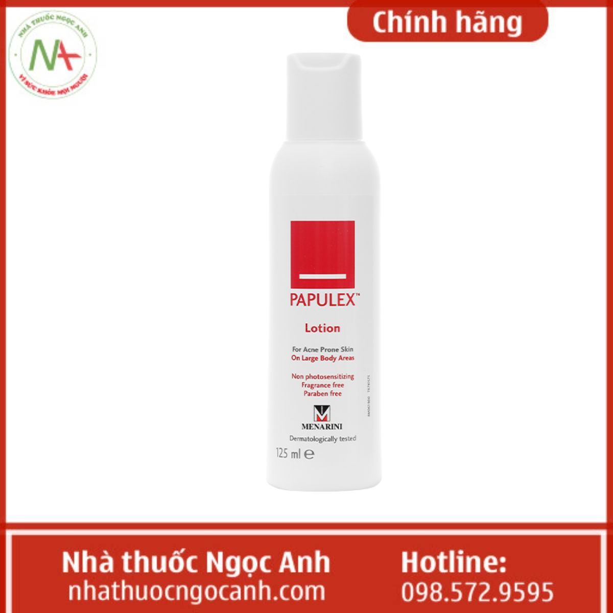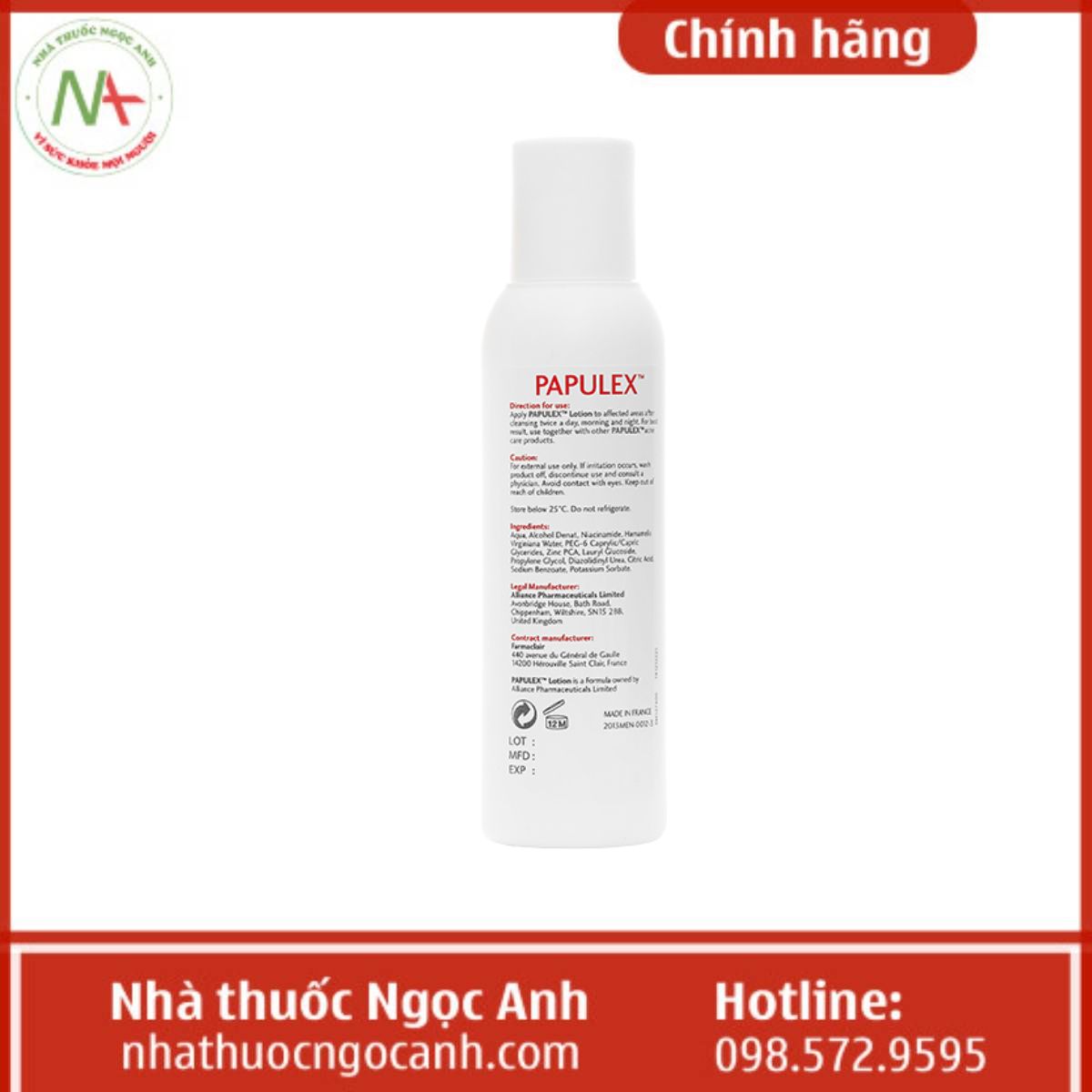Nhà thuốc Ngọc Anh là địa chỉ bán hàng chính hãng được nhiều khách hàng lựa chọn với đội ngũ nhân viên là các dược sĩ có kinh nghiệm chuyên môn vì vậy các bạn có thể hoàn toàn yên tâm khi mua Papulex Lotion chính hãng tại Nhà thuốc Ngọc Anh chúng tôi.