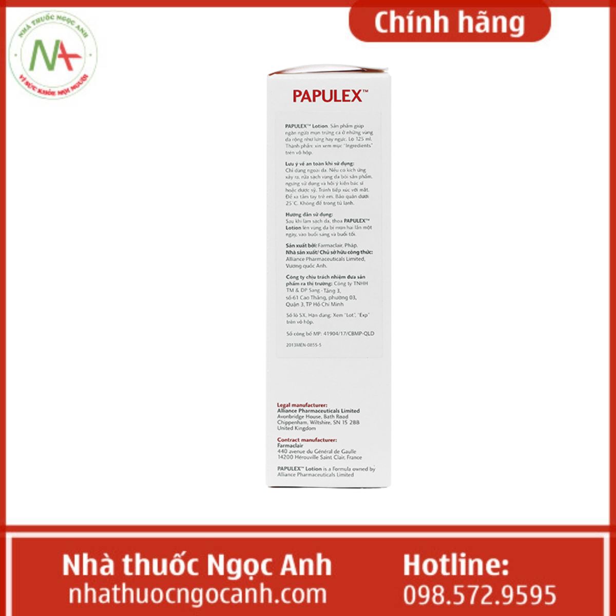 Công dụng Papulex Lotion