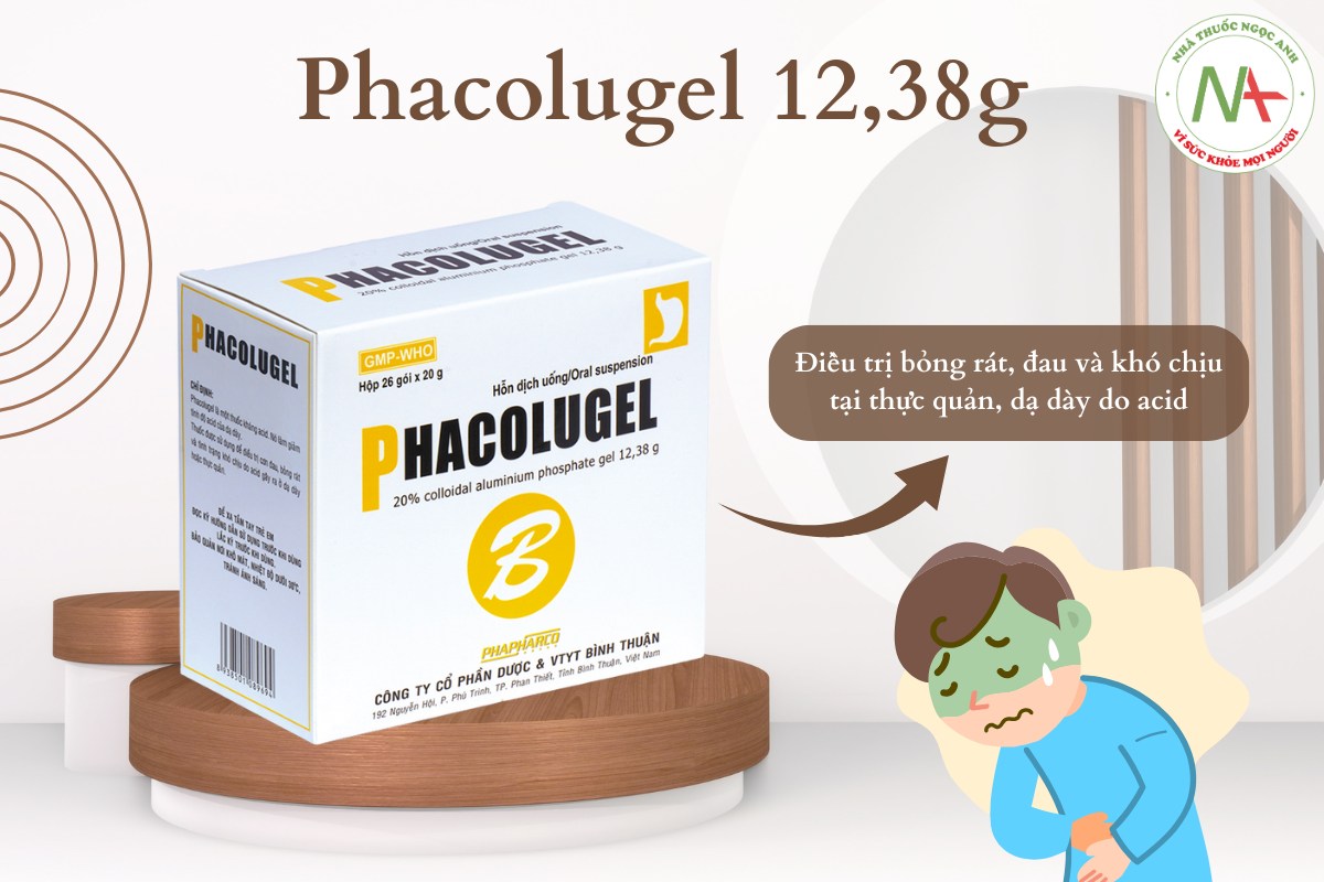 Với đặc tính của Nhôm phosphat, Phacolugel 12,38g được xếp vào nhóm thuốc kháng acid. Nó giúp giảm bớt độ acid cho dạ dày.