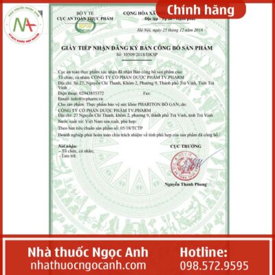 - Nhà sản xuất: Công ty cổ phần dược phẩm TV.Pharm.