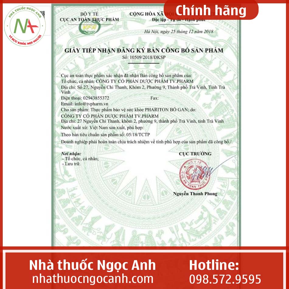 - Số đăng ký: 10509/ 2018/ ĐKSP.
