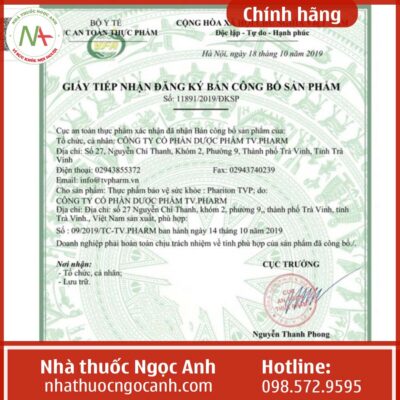 - Nhà sản xuất: Công ty cổ phần dược phẩm TV Pharm.