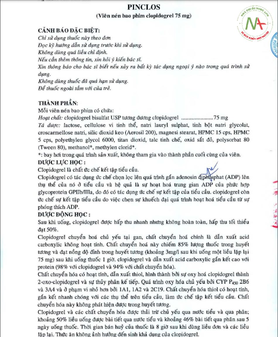 Thuốc Pinclos 75mg là thuốc dùng cho bệnh nhân bị xơ vữa động mạch vành hay bệnh nhân bị hội chứng mạch vành cấp tính.