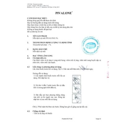 Pivalone 1% thuộc nhóm thuốc glucocorticoid dùng tại chỗ. Thuốc xịt mũi Corticoid dùng để điều trị các triệu chứng viêm, di ứng đường hô hấp.