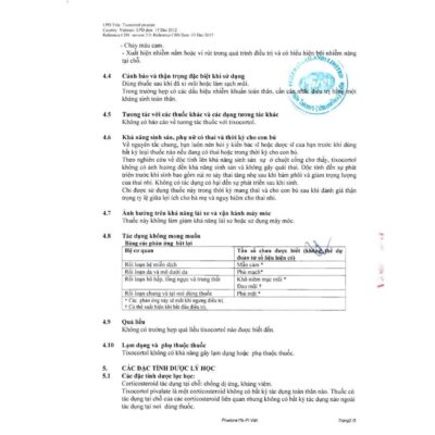 - Triệu chứng: Rất ít khi bắt gặp các trường hợp bị ngộ độc khi sử dụng quá liều Tixocortol. Do hầu hết Tixocortol khi vào tuần hoàn được chuyển hóa nhanh chóng ở gan thành dạng mất hoạt tính.
