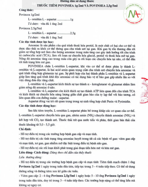 Thuốc Povinsea là thuốc điều trị bệnh gan do công ty cổ phần dược trung ương 1-Pharbaco sản xuất với thành phần chính là L-ornithin L-aspartat.