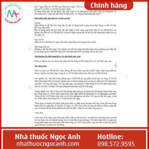 Trên đây là tất cả những thông tin về thuốc Pradaxa 150mg mà nhà thuốc Ngọc Anh đưa tới độc giả. Mọi thông tin trên mang tính chất tham khảo khi người dùng cần tìm hiểu về sản phẩm. Nhà thuốc mong những thông tin này có ích với bạn. Cảm ơn và hãy theo dõi nhà thuốc để cập nhập những thông tin mới nhất!