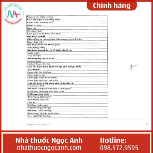 - Rối loạn hệ thần kinh: Đau đầu, chóng mặt, mất tập trung, rùng mình, sợ hãi, ngủ gà và cảm giác kiến bò.