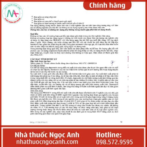 Priligy 30mg – loại thuốc có công dụng tuyệt vời và là lựa chọn hàng đầy trong điều trị xuất tinh sớm ở nam giới. Hãy cùng Nhà thuốc Ngọc Anh (nhathuocngocanh.com) tìm hiểu kỹ hơn về thuốc Priligy qua bài viết sau.