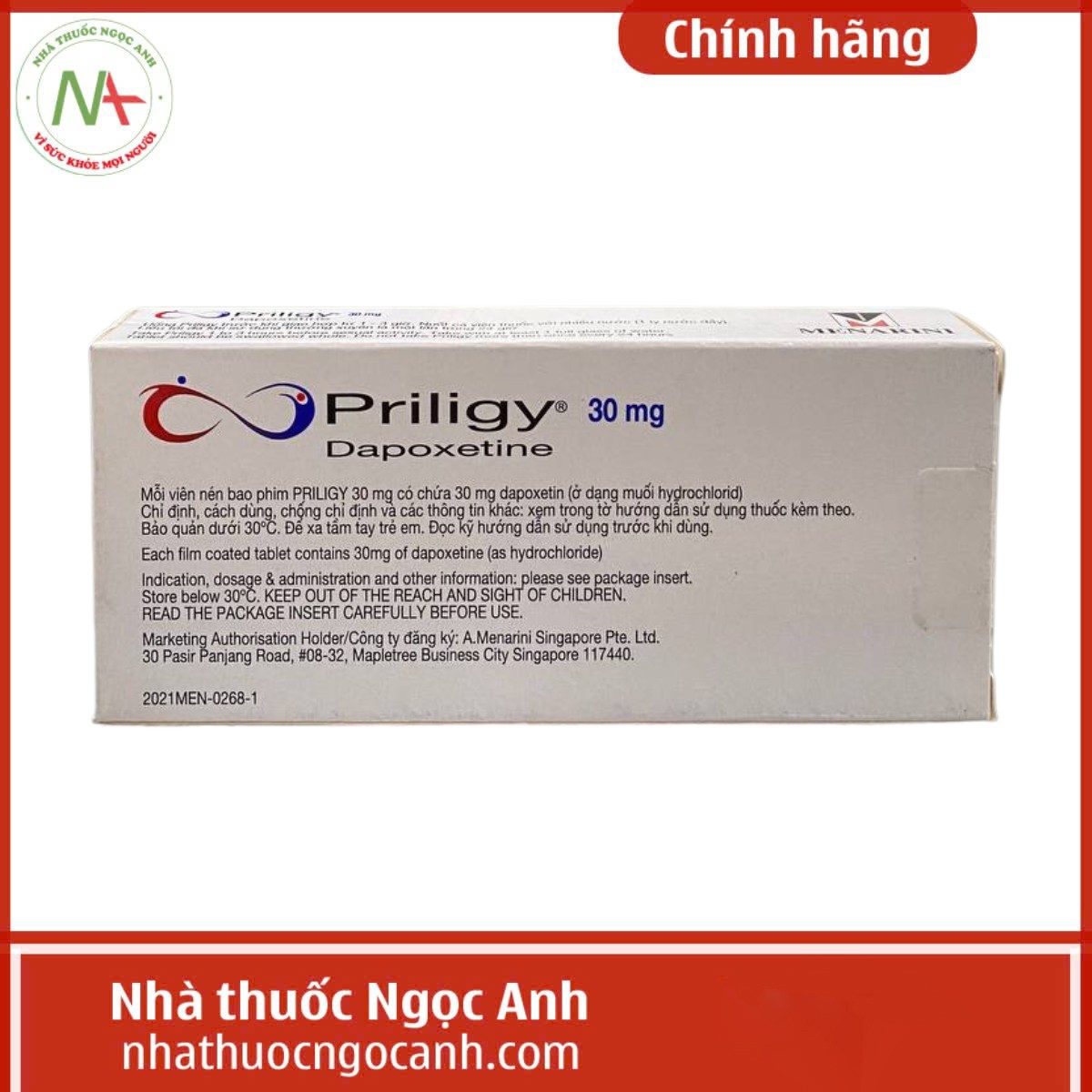 Thuốc Priligy 30mg có chứa thành phần chính là Dapoxetine, có tác dụng điều trị xuất tinh sớm ở nam giới. Cơ chế tác dụng của Dapoxetine: Ức chế có chọn lọc tái hấp thu Serotonin của nơron thần kinh, và hậu quả làm ảnh hưởng đến hoạt động truyền tải nơron ở các thụ thể trước và sau synap. Dapoxetine điều chỉnh phản xạ xuất tinh, làm tăng khả năng trì hoãn xuất tinh ngoài âm đạo và làm giảm thời gian xuất tinh ngoài âm đạo (do sự xuất tinh ở nam giới được điều tiết bởi hệ thần kinh giao cảm).