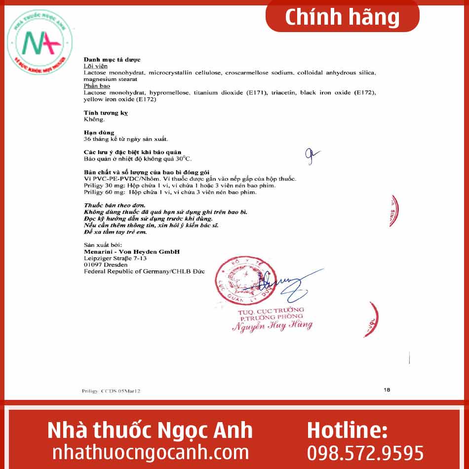 Tờ hướng dẫn sử dụng thuốc Priligy 30mg. Tải tờ hướng dẫn Tại đây.