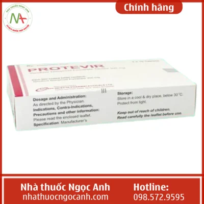 Tại Nhà Thuốc Ngọc Anh có bán thuốc Protevir 300mg giá 1.800.000VNĐ/ hộp. Nếu có nhu cầu mau sản phẩm, có thể liên hệ với nhà thuốc để đươc tư vấn mua hàng nhanh chóng.