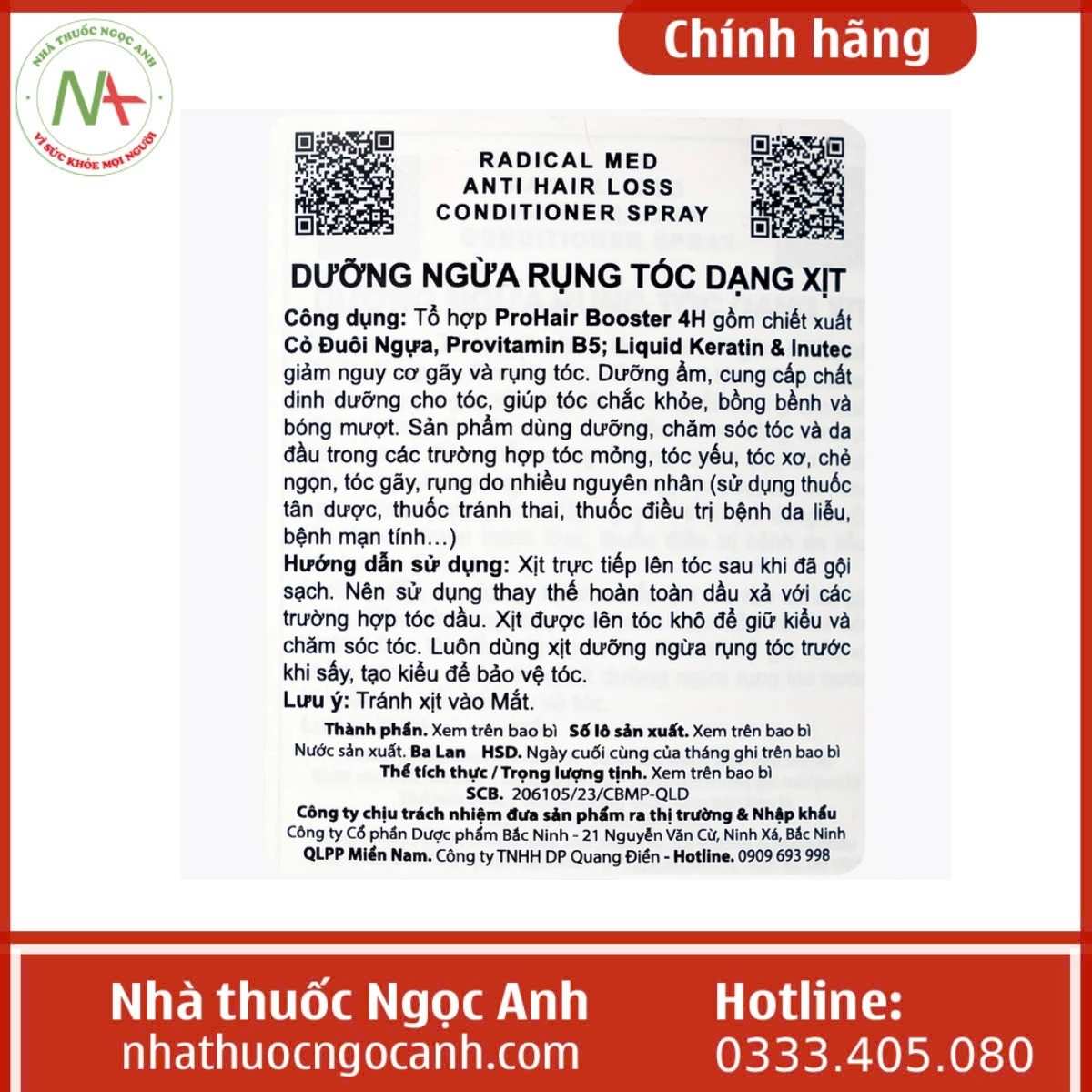 Trong mỗi chai xịt Radical Med Anti Hair Loss Conditioner Spay có chứa: