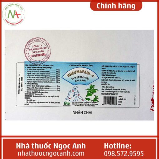 Các thành phần và hàm lượng của từng thành phần có trong 1 viên nang Rheumapain F Fito