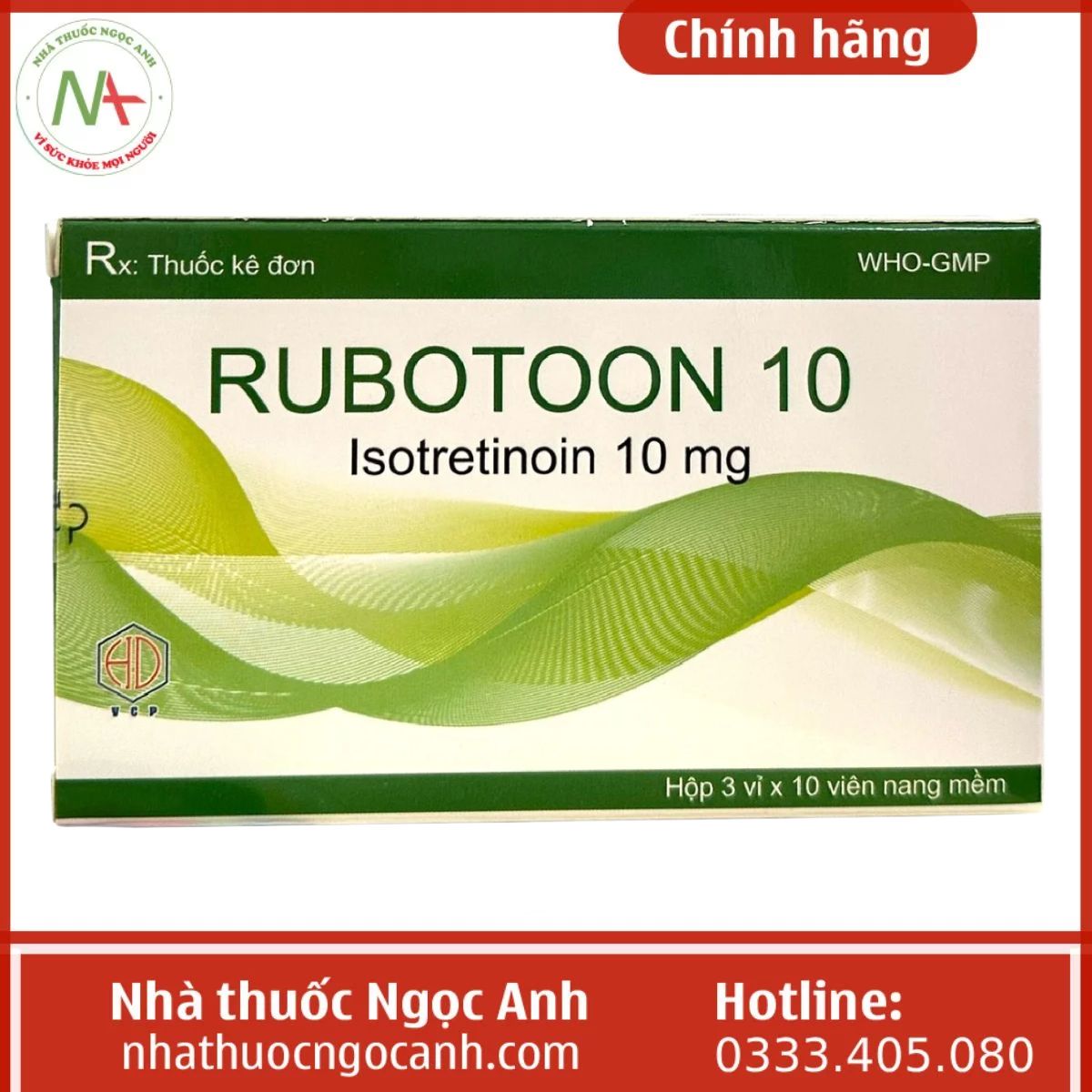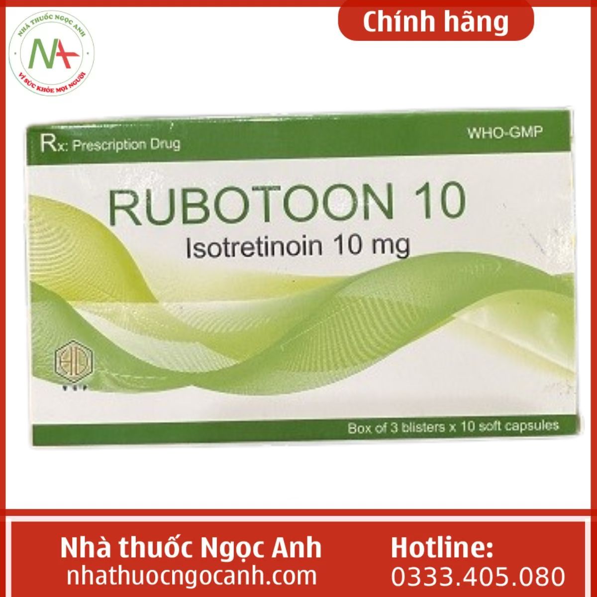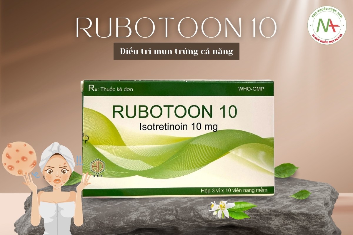 Thuốc Rubotoon 10 được sử dụng ở bệnh nhân mắc trứng cá nặng hệ thống và không đáp ứng với biện pháp chữa trị khác. Nhất là tình trạng mụn trứng cá bọc.