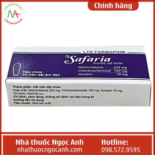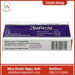 Thuốc Safaria là thuốc của Ltd Farmaprim nghiên cứu sản xuất. Được sử dụng để điều trị cho bệnh nhân bị bệnh nhiễm khuẩn, nấm ở âm đạo với 3 thành phần kết hợp.