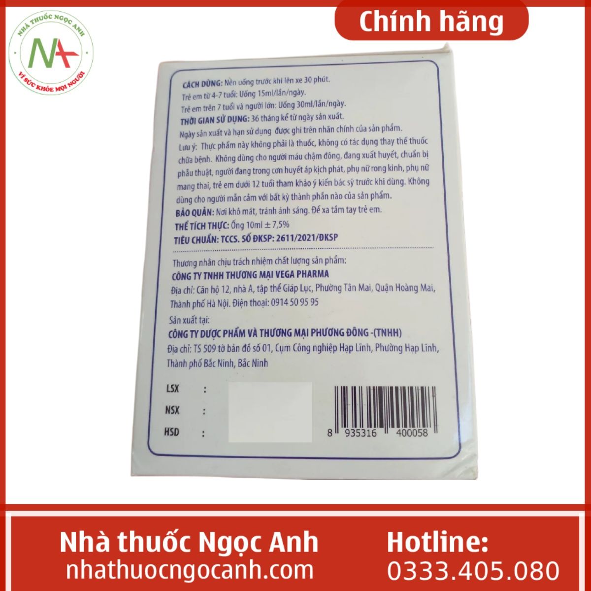 Nước uống chống say tàu xe Sataxe Vega được dùng vào thời điểm trước khi đi tàu xe 30 phút.