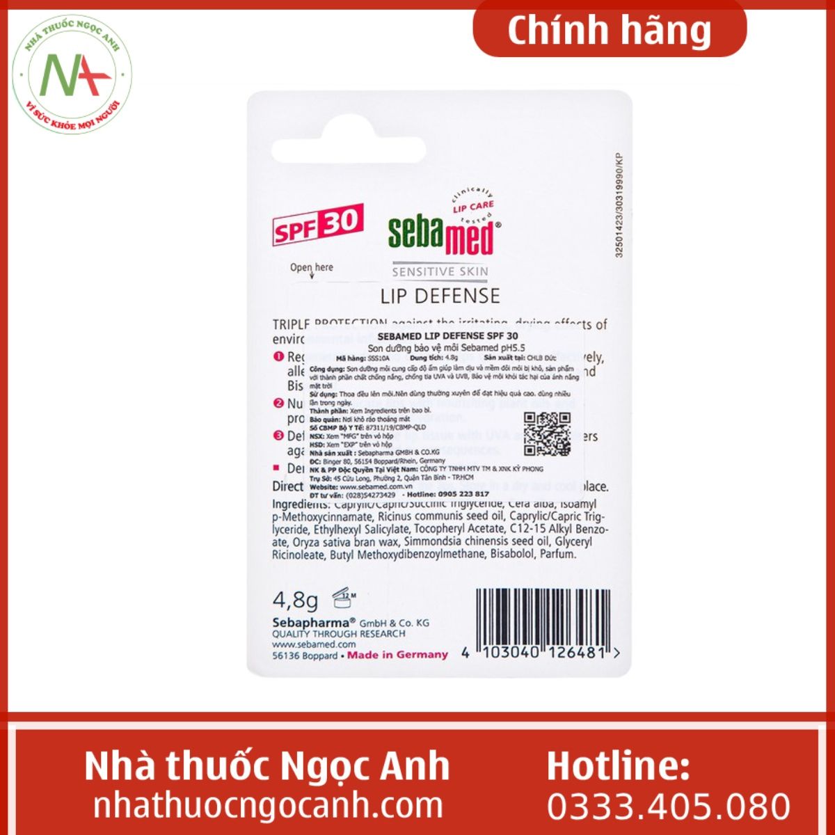 Nhà thuốc Ngọc Anh là địa chỉ bán hàng chính hãng được nhiều khách hàng lựa chọn với đội ngũ nhân viên là các dược sĩ có kinh nghiệm chuyên môn vì vậy các bạn có thể hoàn toàn yên tâm khi mua Sebamed Lip Defense chính hãng tại Nhà thuốc Ngọc Anh chúng tôi.
