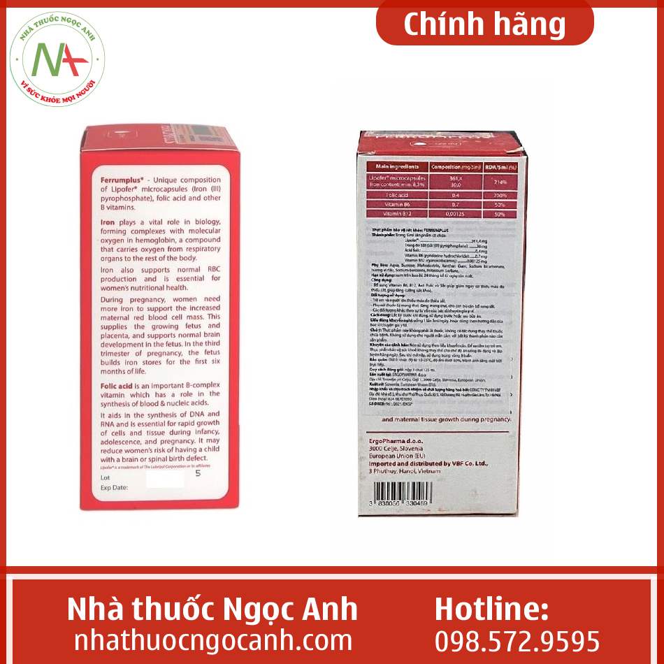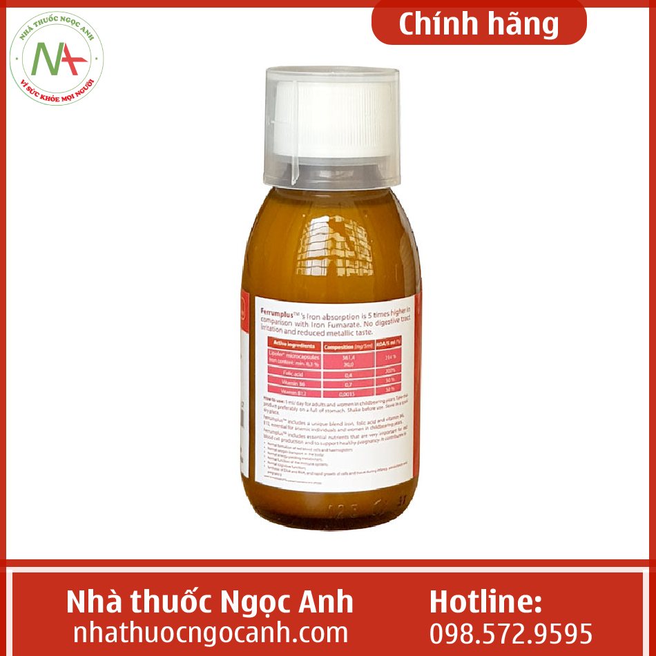 Siro Ferrumplus hay (Ferrumplus dạng nước) có công dụng bổ sung sắt, vitamin B12, B6 cho cơ thể, giảm nguy cơ bị thiếu máu, thiếu sắt, chóng mặt, xanh xao…