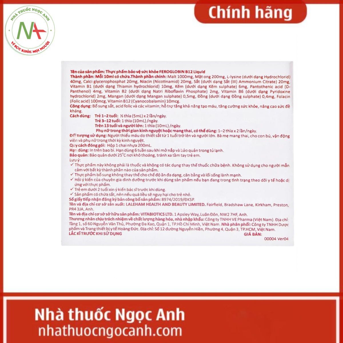 Giá Siro Vitabiotics Feroglobin B12 tại Nhà thuốc Ngọc Anh hiện nay đã được cập nhật trên đầu trang. Giá bán này chỉ áp dụng khi mua trực tiếp hay trực tuyến tại Nhà thuốc Ngọc Anh chứ không áp dụng cho các cơ sở hay địa chỉ phân phối khác, các bạn đọc nên lưu ý điều này.