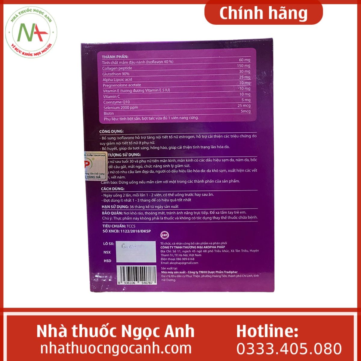 Giá Soy Isoflavones Tradiphar tại Nhà thuốc Ngọc Anh hiện nay đã được cập nhật trên đầu trang. Giá bán này chỉ áp dụng khi mua trực tiếp hay trực tuyến tại Nhà thuốc Ngọc Anh chứ không áp dụng cho các cơ sở hay địa chỉ phân phối khác, các bạn đọc nên lưu ý điều này.