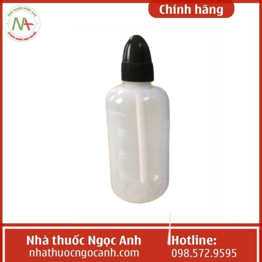 Há miệng thở bình thường, dùng tay bóp nhẹ nhàng vào bình để dung dịch chảy vào làm sạch khoang mũi bên này và khoang mũi còn lại..