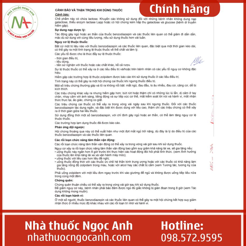 - Người bệnh bị dị ứng với Zolpidem hoặc mẫn cảm với bất kì chất nào có trong thành phần của sản phẩm.