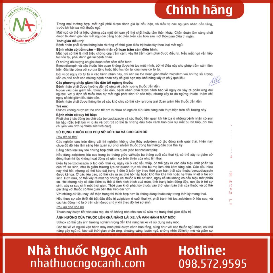 Đọc kỹ hướng dẫn sử dụng thuốc Stilnox 10mg trước khi dùng.