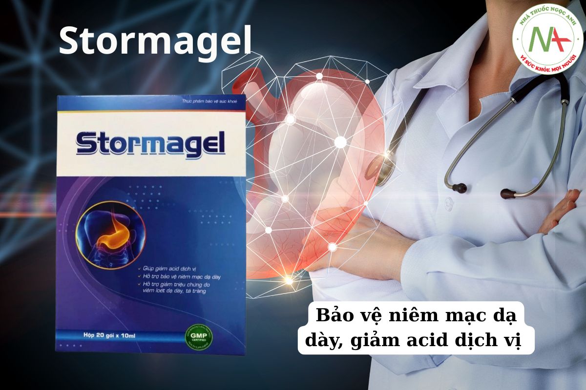 Stormagel có tác dụng hỗ trợ bảo vệ niêm mạc dạ dày, giảm acid dịch vị và giảm triệu chứng do viêm loét dạ dày tá tràng