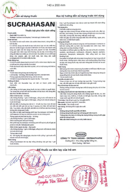 Tờ hướng dẫn sử dụng thuốc Sucrahasan. tải về tại đây.