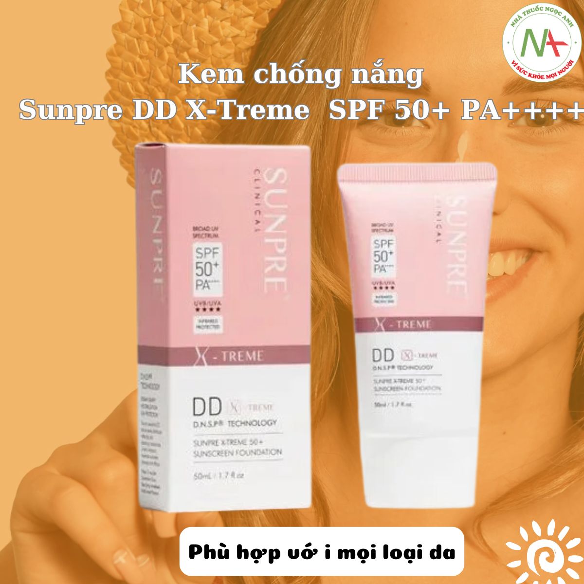 Sunpre DD X-Treme SPF 50+ PA++++ 50ml có tác dụng bảo vệ da khỏi tác hại của tia UV, ánh mắt trời cho da.
