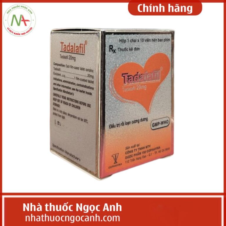 Tadalafil 20mg Cophavina là thuốc có tác dụng điều trị tình trạng nam giới bị rối loạn cương dương hay không có khả năng duy trì cương dương trong tình dục. Bài này Nhà thuốc Ngọc Anh xin được trả lời cho bạn các câu hỏi: Tadalafil 20mg Cophavina là thuốc gì? Tadalafil 20mg Cophavina có tác dụng gì? Tadalafil 20mg Cophavina giá bao nhiêu? Dưới đây là thông tin chi tiết.