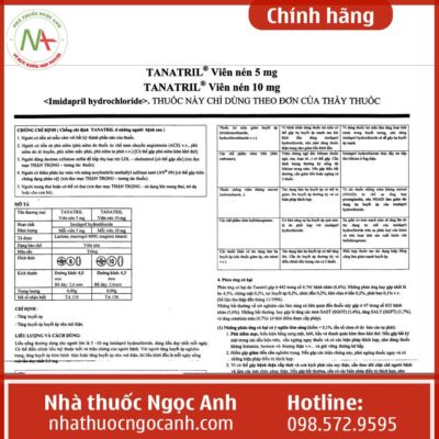 Trên thị trường hiện nay có rất nhiều thông tin về sản phẩm thuốc Tanatril Tablets 5mg tuy nhiên còn chưa đầy đủ. Bài này nhà thuốc Ngọc Anh (nhathuocngocanh.com) xin được trả lời cho bạn các câu hỏi: Tanatril Tablets 5mg là thuốc gì? Thuốc Tanatril Tablets 5mg có tác dụng gì? Thuốc Tanatril Tablets 5mg giá bao nhiêu? Dưới đây là thông tin chi tiết.