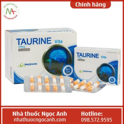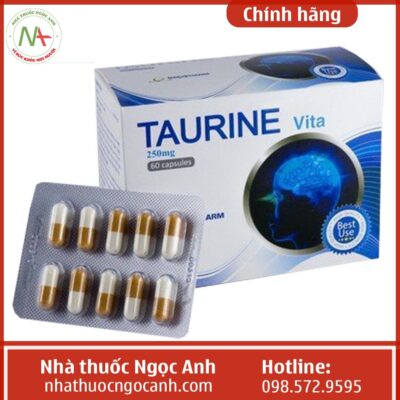 - Taurine Vita 250mg chứa hoạt chất chính là Taurine. Taurine phục vụ nhiều chức năng khác nhau trong hệ thống thần kinh trung ương, từ phát triển đến bảo vệ tế bào và sự thiếu hụt taurine có liên quan đến bệnh cơ tim, rối loạn chức năng thận, bất thường về phát triển và tổn thương nghiêm trọng đối với tế bào thần kinh võng mạc.