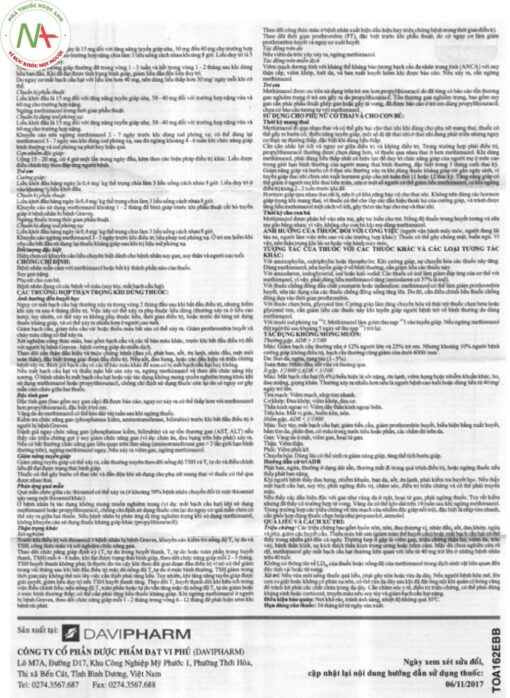 Liều điều trị cường giáp nặng: uống 60mg/ ngày, chia đều cho 3 lần uống cách nhau 8 tiếng.