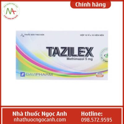 Tazilex thuộc nhóm thuốc kháng giáp có thành phần hoạt chất chính là Methimazole (còn gọi là Thiamazol), thuốc được chỉ định cho bệnh nhân trước khi phẫu thuật tuyến giáp do cường giáp, triệu chứng nhiễm độc giáp và bổ trợ trước và trong khi điều trị iod phóng xạ.