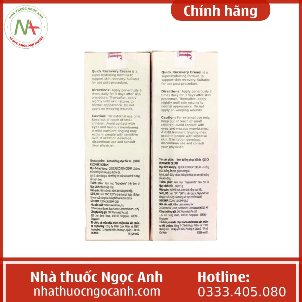 Mình bị kích ứng sau khi thử sản phẩm dưỡng trắng khác, da nổi mẩn đỏ và ngứa. Bác sĩ da liễu giới thiệu Quick Recovery Cream, mình bôi theo đúng hướng dẫn thì da dịu lại chỉ sau 2 ngày. Hiệu quả rõ rệt, rất đáng tiền.