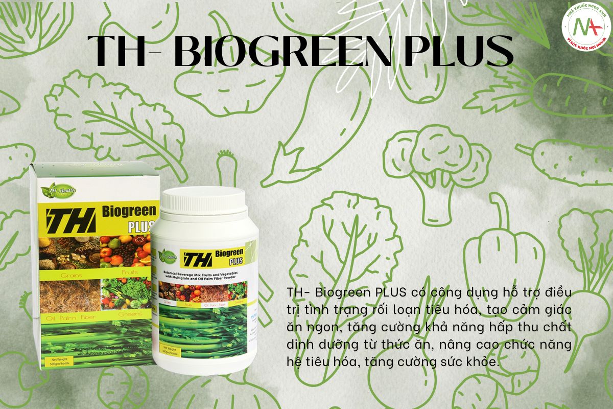 TH- Biogreen PLUS có công dụng hỗ trợ điều trị tình trạng rối loạn tiêu hóa, tạo cảm giác ăn ngon, tăng cường khả năng hấp thu chất dinh dưỡng từ thức ăn, nâng cao chức năng hệ tiêu hóa, tăng cường sức khỏe.