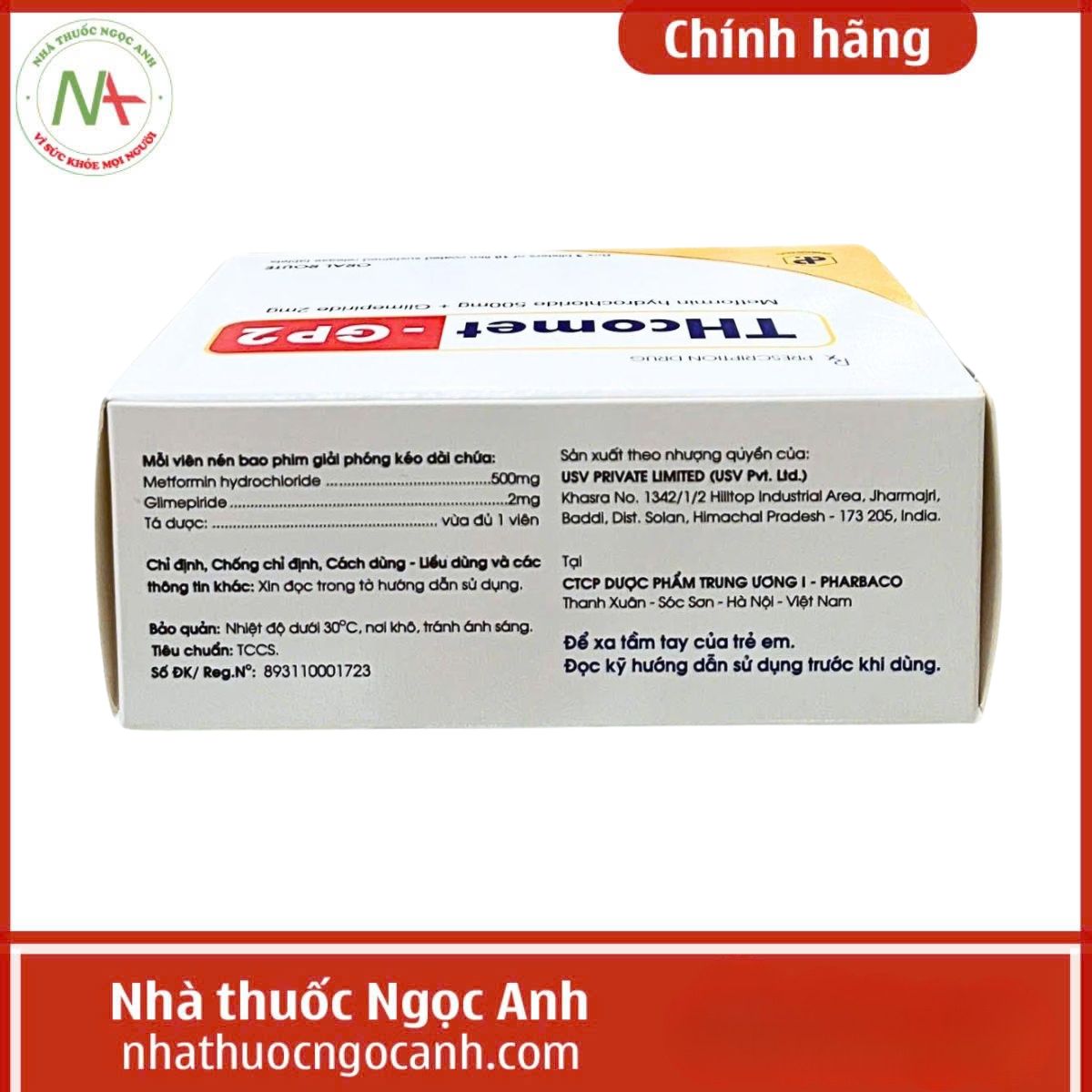 THcomet-GP2 có thành phần chính bao gồm: Metformin hydrochloride 500mg; Glimepirid 2mg