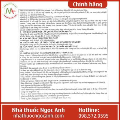 Do thuốc có Vitamin C là 1 acid hữu cơ nên khi vào cơ thể có thể gây tăng nồng độ H+ trong cơ thể gây tăng nguy cơ kết tủa một số chất do không sử dụng đối với những bệnh nhân có tiểu sử bị sỏi thận, rối loạn nồng độ oxalat,…