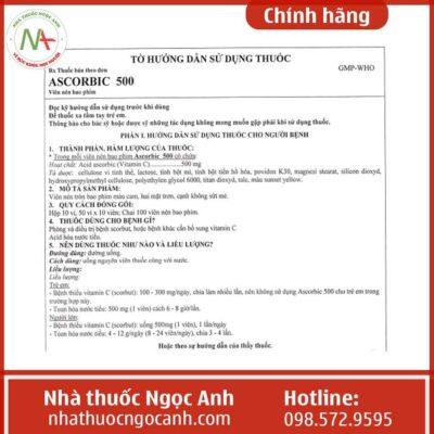 Trên thị trường hiện nay có rất nhiều thông tin về sản phẩm thuốc Ascorbic 500mg tuy nhiên còn chưa đầy đủ. Bài này nhà thuốc Ngọc Anh xin được trả lời cho bạn các câu hỏi: Ascorbic 500mg là thuốc gì? Thuốc Ascorbic 500mg có tác dụng gì? Thuốc Ascorbic 500mg giá bao nhiêu? Dưới đây là thông tin chi tiết.