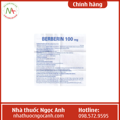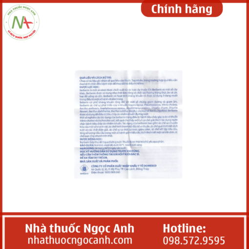 Tờ hướng dẫn sử dụng thuốc Berberin 100mg Domesco. Tải về tại đây.