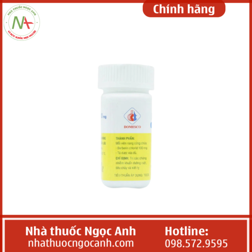Hiện nay có rất nhiều thông tin về sản phẩm Thuốc Berberin 100mg Domesco nhưng còn chưa đầy đủ. Liệu thuốc Berberin 100mg Domesco có tốt không? Nhà thuốc Ngọc Anh xin được trả lời cho bạn các câu hỏi: Berberin 100mg là thuốc gì? Thuốc Berberin 100mg Domesco có tác dụng gì? Thuốc Berberin 100mg Domesco giá bao nhiêu? Dưới đây là thông tin chi tiết.