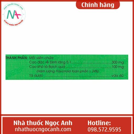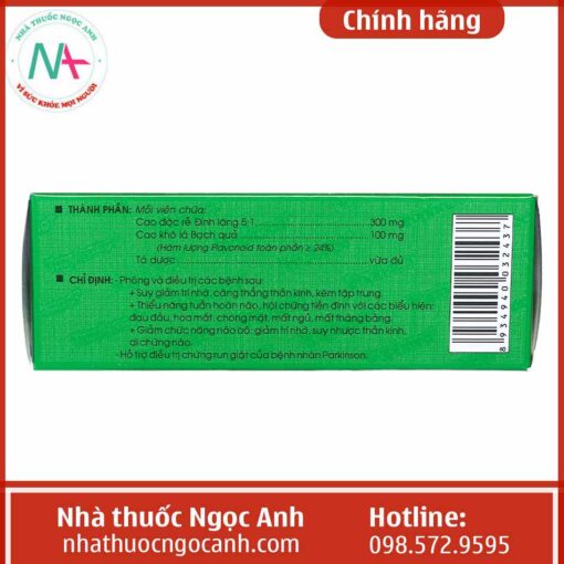 - 100 mg hàm lượng cao khô lá Bạch quả.