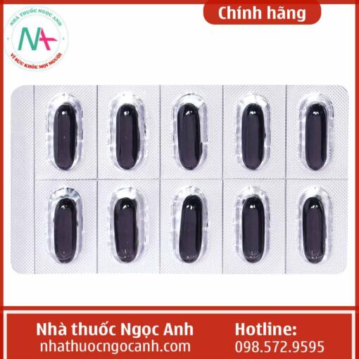 Quy cách đóng gói: Hộp 5 vỉ, mỗi vỉ chứa 10 viên nang mềm.